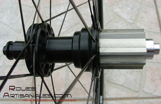 Nous avions présenté ces roues sur RouesArtisanales il y a presque deux ans (voir ici). Le produit a constamment été amélioré depuis ces premières versions. Etant seul à fabriquer, il peut se permettre des mises à jours des produits quand bon lui semble. Un nouveau moyeu arrière disposant d’un rayonnage atypique: radial côté roue libre et croisé côté opposé pour équilibrer les tensions, des rayons Sapim Cx-ray puis des améliorations sur les jante permettant de diminuer sans cesse son poids sans affecter sa résistance. Le poids des roues est ainsi descendu aux alentours de 1002g en version 24/24 Cx-ray.