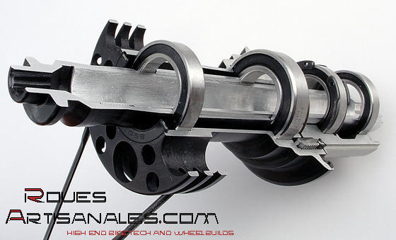 - – roulements central plus massif pour une meilleure durée de vie, un fonctionnement plus souple et plus doux quelque soient les conditions: 15x28x7 contre 15x24x5 pour l’ancien